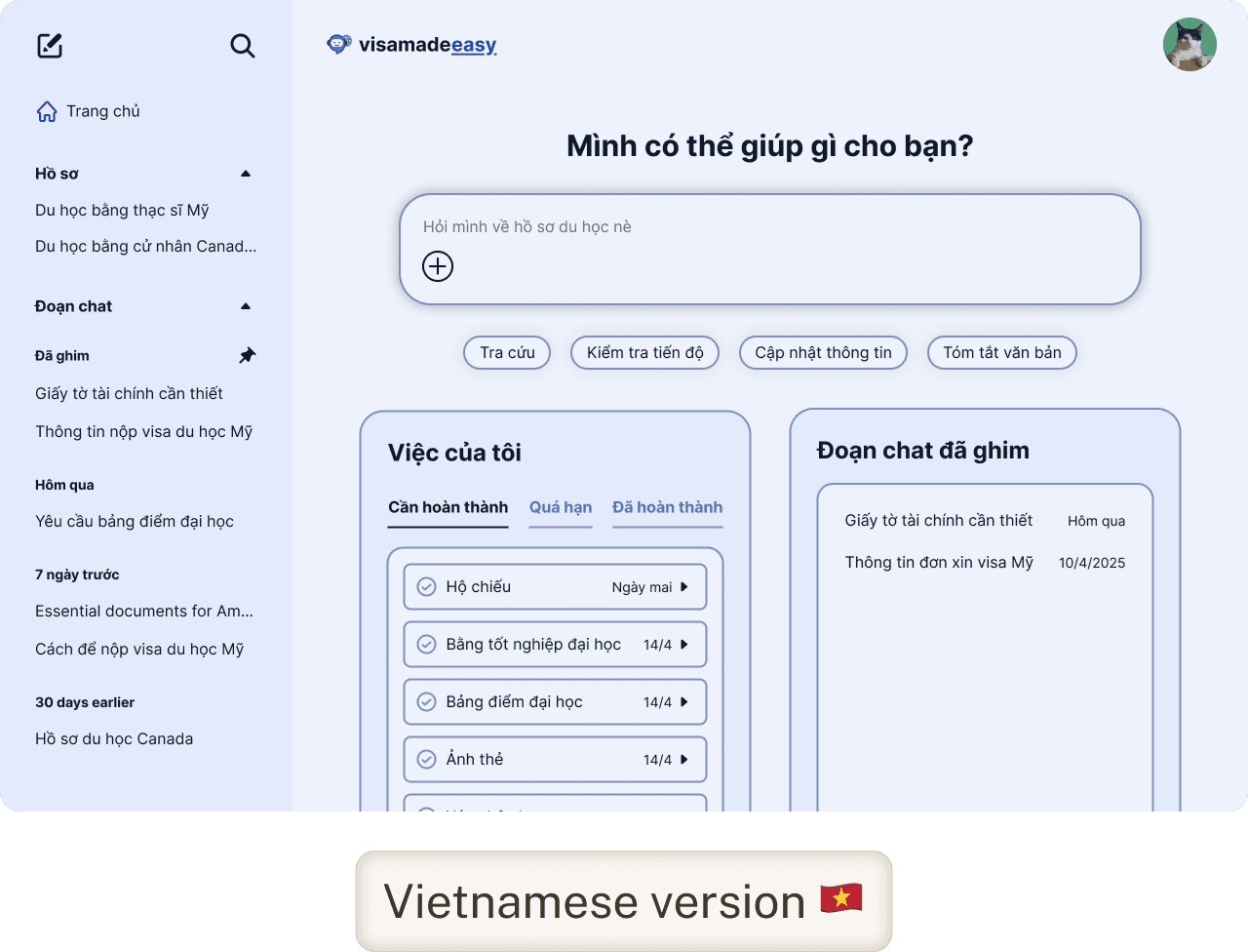 VisaMadeEasy - An AI-powered management platform that guides students from immigration questions to organized tasks for visa application.